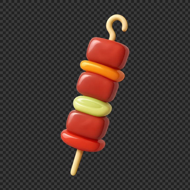 PNG 3D glossy skewered food illustration. https://www.rawpixel.com/image/20096257/png-glossy-skewered-food-illustrationView license