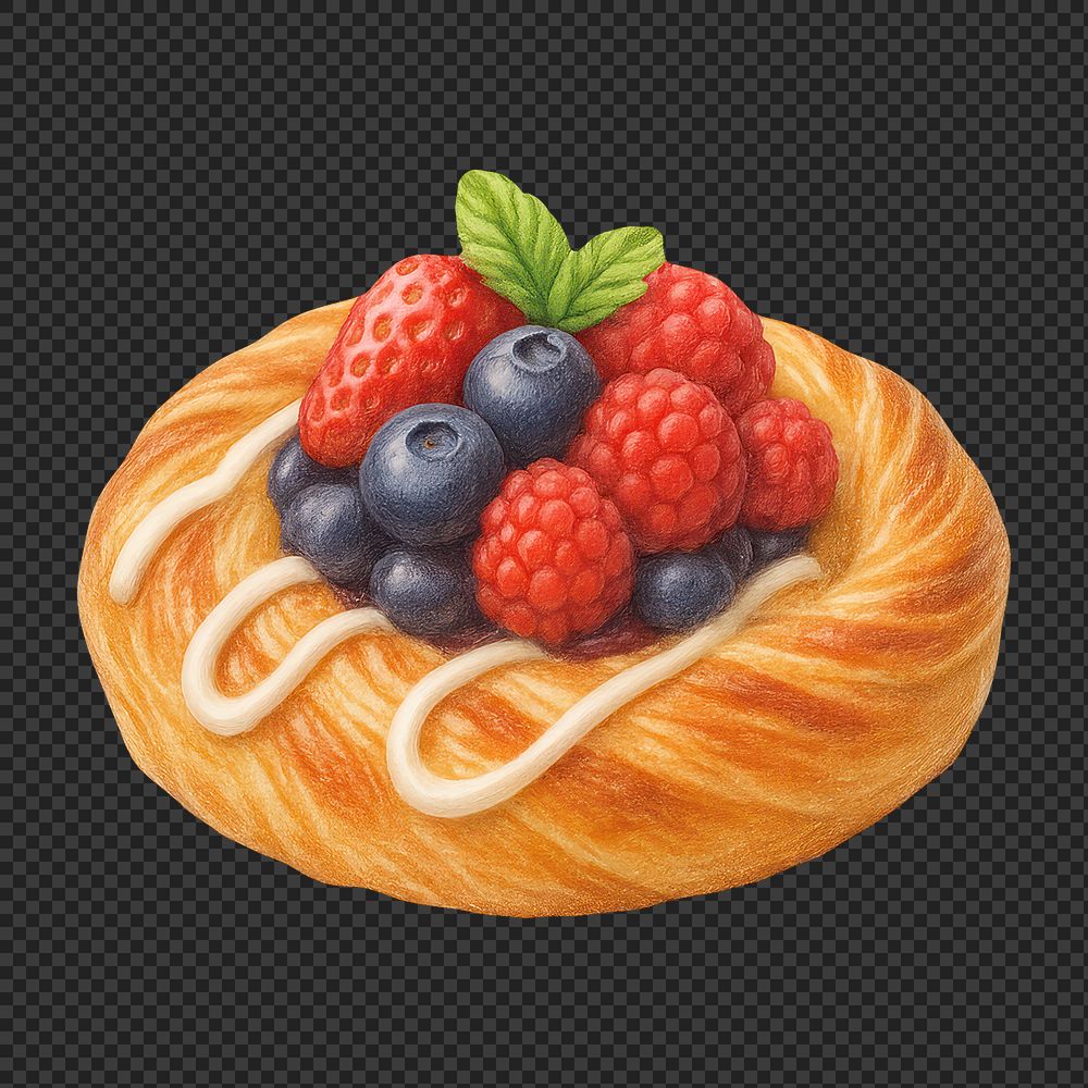 PNG Delicious pastry with fresh berries. https://www.rawpixel.com/image/18460864/png-delicious-pastry-with-fresh-berriesView license