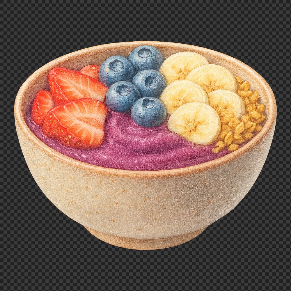 PNG Vibrant fruit smoothie bowl illustration. https://www.rawpixel.com/image/18460671/png-vibrant-fruit-smoothie-bowl-illustrationView license