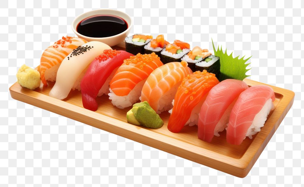 PNG Sushi on plate platter produce grain. https://www.rawpixel.com/image/14606508/png-sushi-plate-platter-produce-grainView license