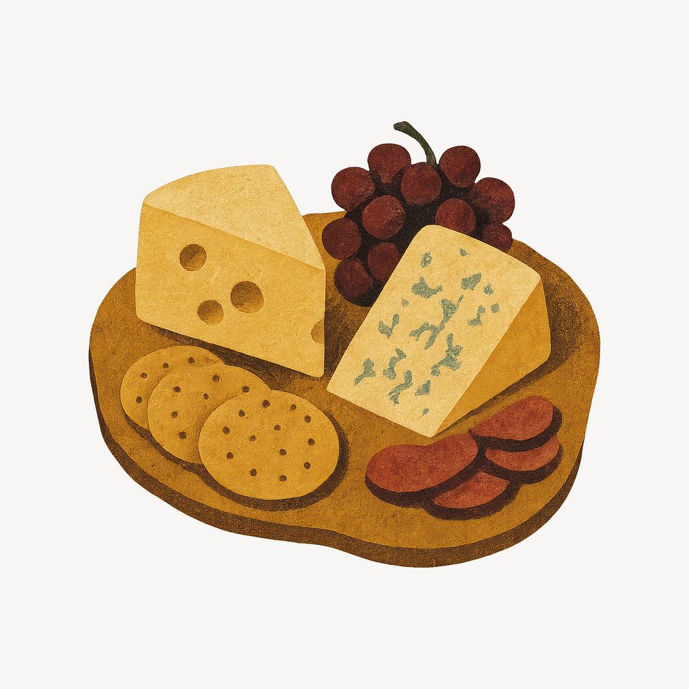 Cheese platter with grapes illustration. https://www.rawpixel.com/image/23045822/cheese-platter-with-grapes-illustrationView license