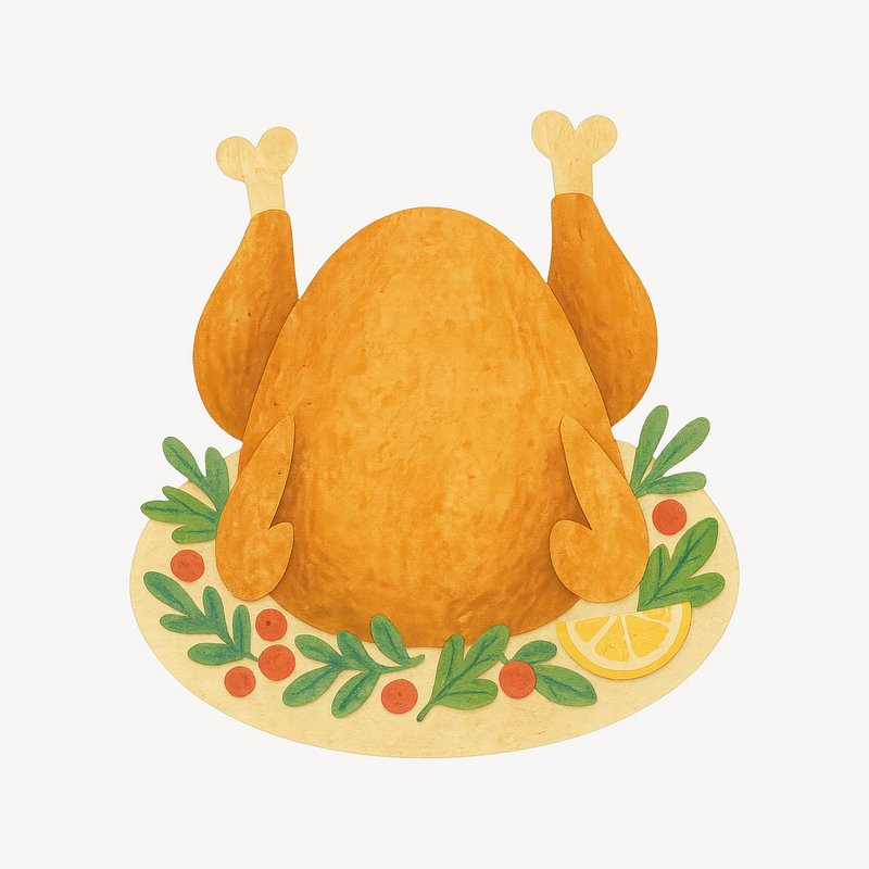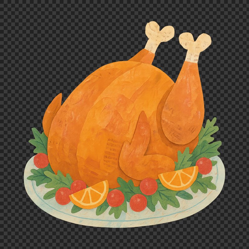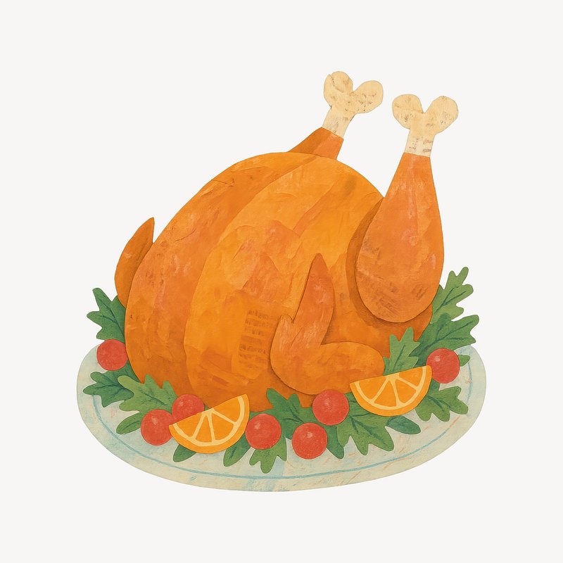 Illustrated roasted turkey with garnish. https://www.rawpixel.com/image/22906163/illustrated-roasted-turkey-with-garnishView license