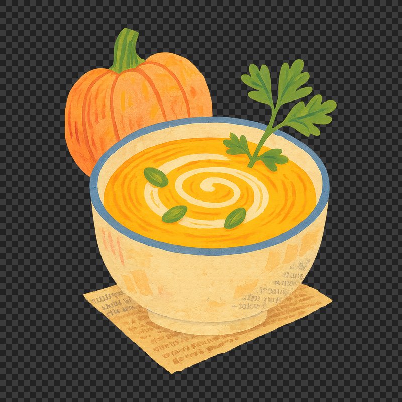 PNG Pumpkin soup illustration with garnish. https://www.rawpixel.com/image/22212732/png-pumpkin-soup-illustration-with-garnishView license