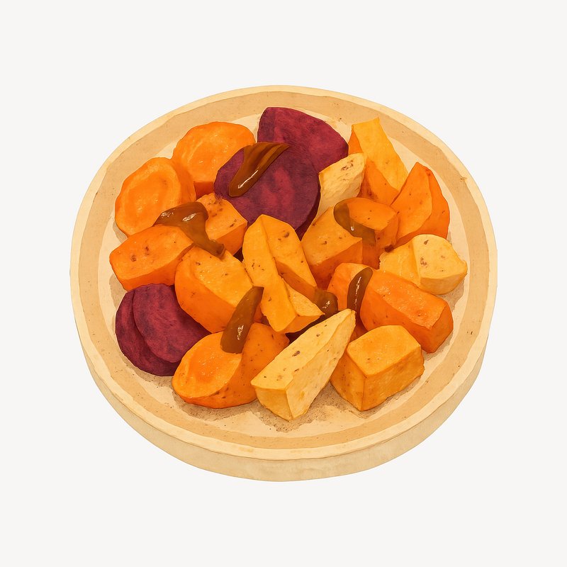 Colorful roasted sweet potato dish. https://www.rawpixel.com/image/22907369/colorful-roasted-sweet-potato-dishView license
