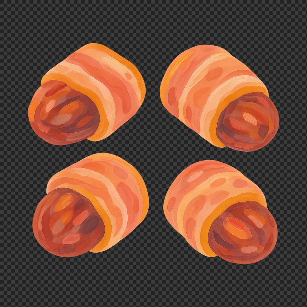 PNG Colorful bacon-wrapped dates illustration. https://www.rawpixel.com/image/22054714/png-colorful-bacon-wrapped-dates-illustrationView license