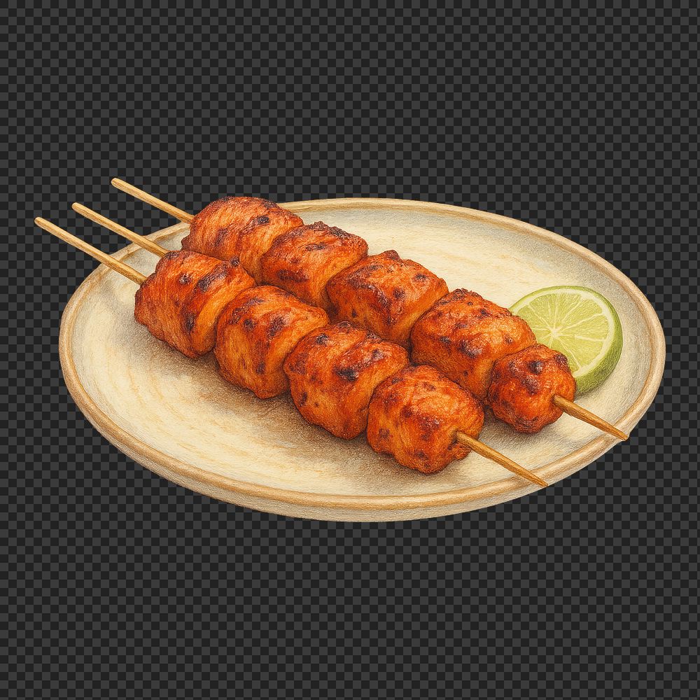 PNG Grilled skewers on plate https://www.rawpixel.com/image/18460583/png-grilled-skewers-plateView license