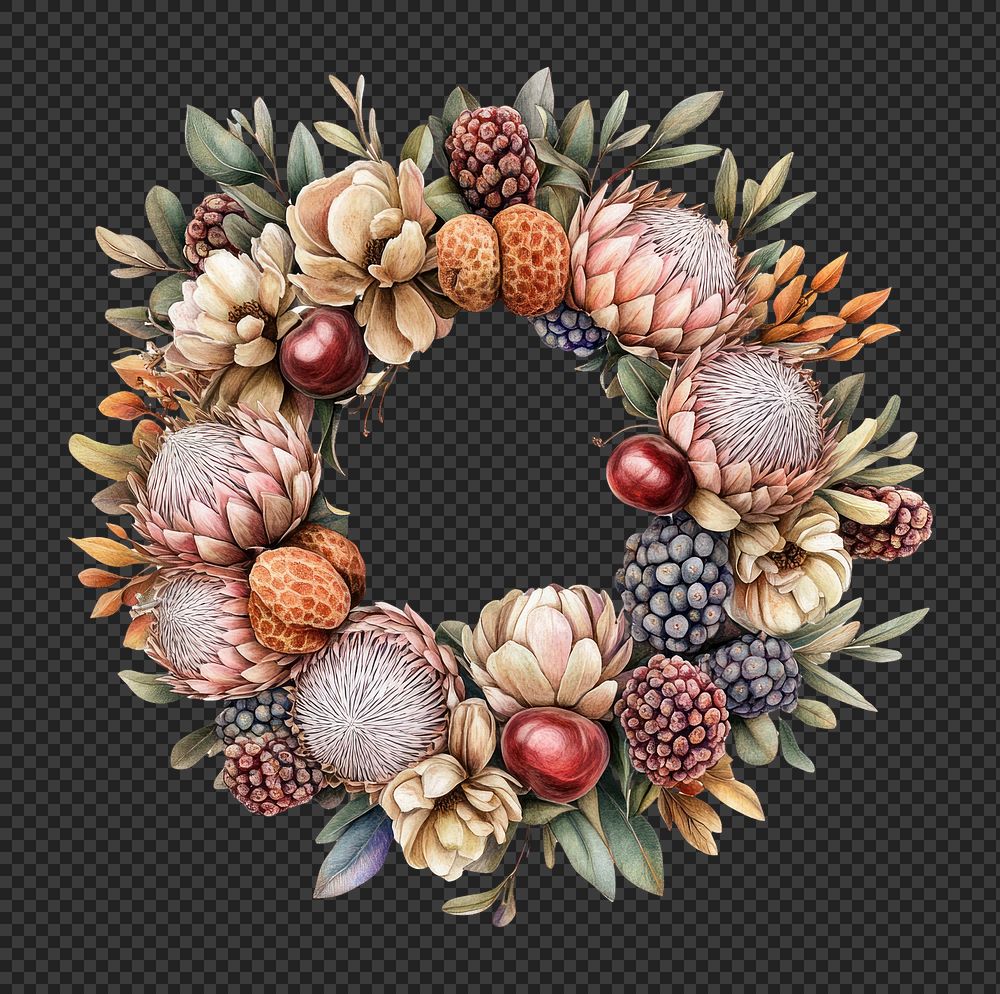 PNG Autumn floral wreath illustration. https://www.rawpixel.com/image/20886336/png-autumn-floral-wreath-illustrationView license