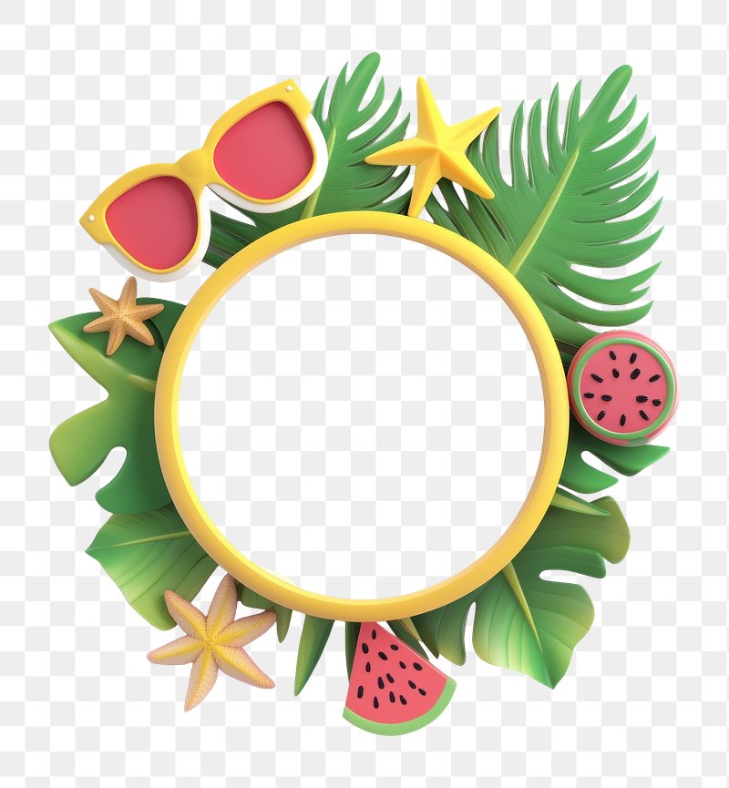 PNG Empty circle with 2-3 palm leaves watermelon sunglasses background. https://www.rawpixel.com/image/16881655/png-empty-circle-with-2-3-palm-leaves-watermelon-sunglasses-backgroundView license
