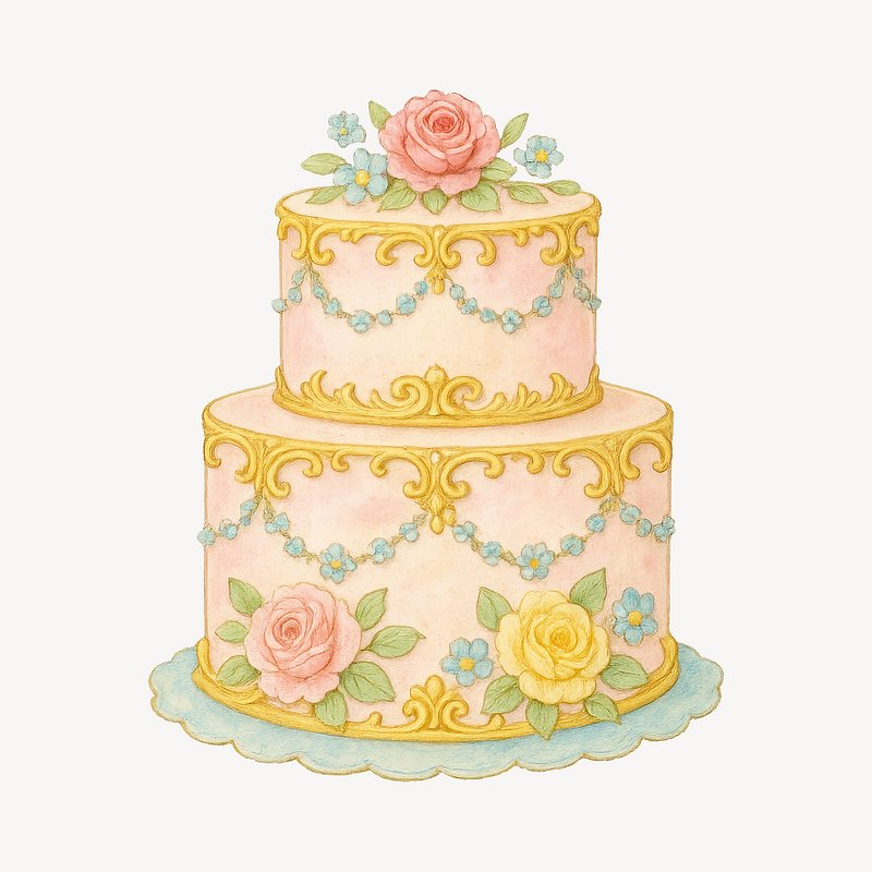 Elegant floral birthday cake illustration. https://www.rawpixel.com/image/19068309/elegant-floral-birthday-cake-illustrationView license