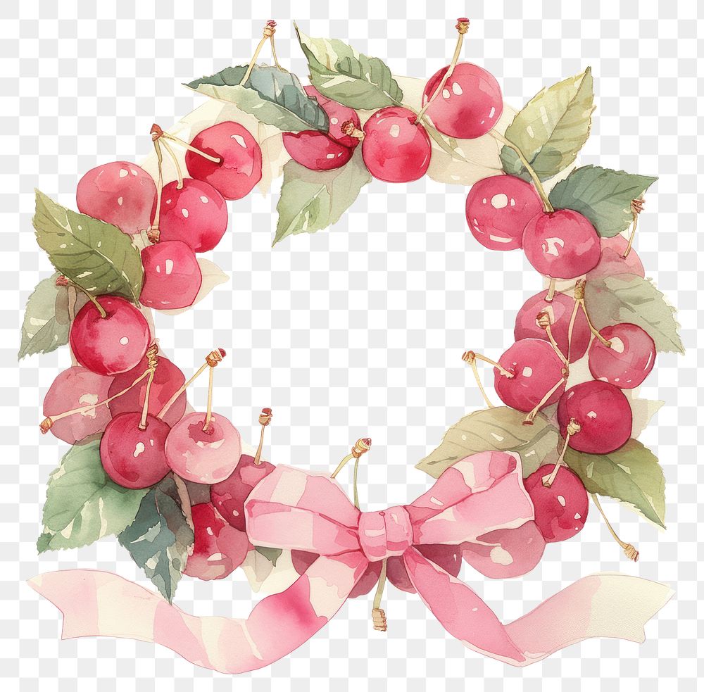 PNG Cherry wreath watercolor illustration https://www.rawpixel.com/image/15060935/png-cherry-wreath-watercolor-illustrationView license