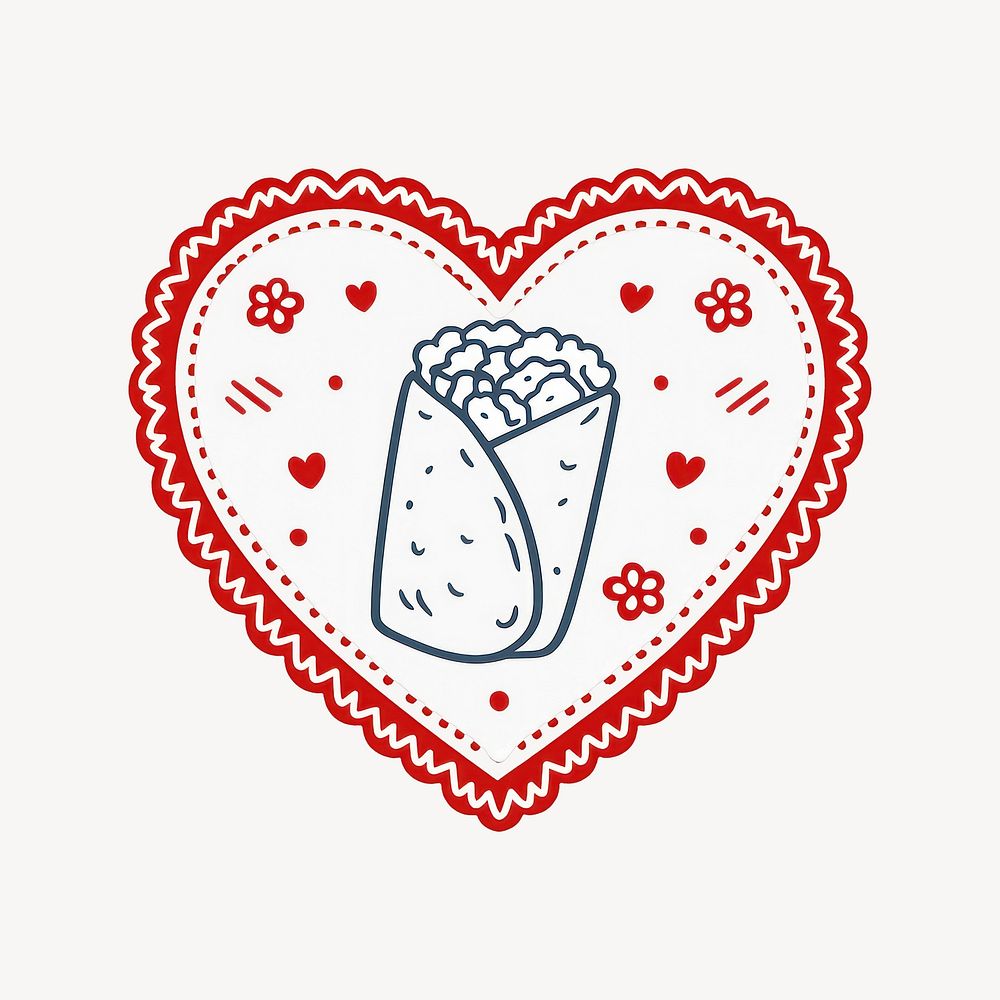 Burrito heart love illustration https://www.rawpixel.com/image/25229886/burrito-heart-love-illustrationView license