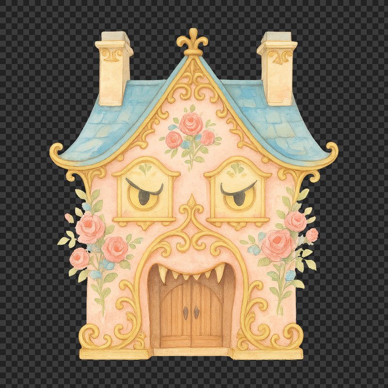 PNG Whimsical pastel fairy tale cottage. https://www.rawpixel.com/image/18556404/png-whimsical-pastel-fairy-tale-cottageView license