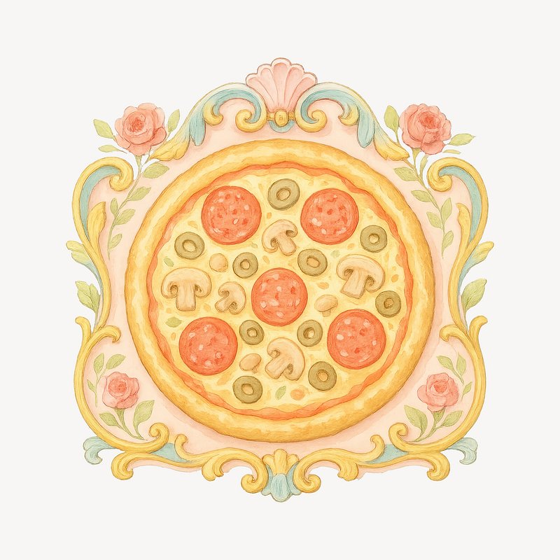 Ornate pizza watercolor illustration. https://www.rawpixel.com/image/19569327/ornate-pizza-watercolor-illustrationView license