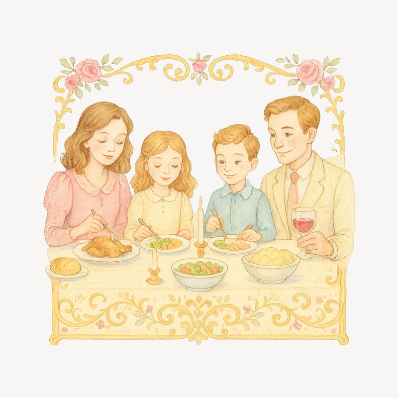 Charming family dinner illustration https://www.rawpixel.com/image/19067847/charming-family-dinner-illustrationView license