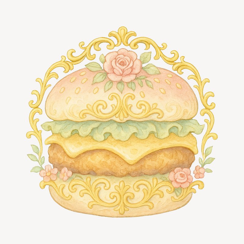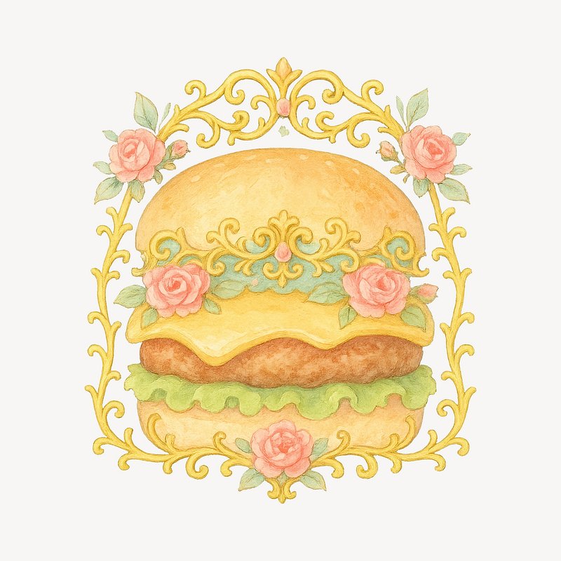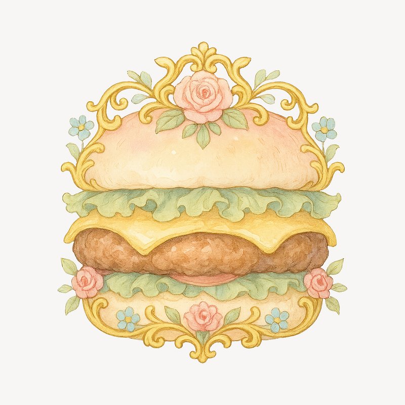 Ornate burger with floral details. https://www.rawpixel.com/image/19067466/ornate-burger-with-floral-detailsView license