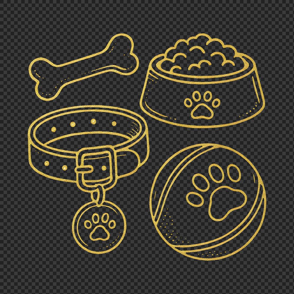 PNG Pet essentials illustrated in gold. https://www.rawpixel.com/image/24389345/png-pet-essentials-illustrated-goldView license