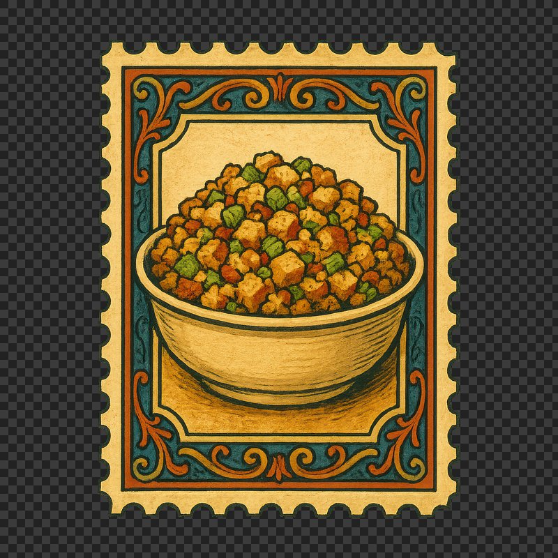 Vintage stamp with fried okra. https://www.rawpixel.com/image/23111858/vintage-stamp-with-fried-okraView license