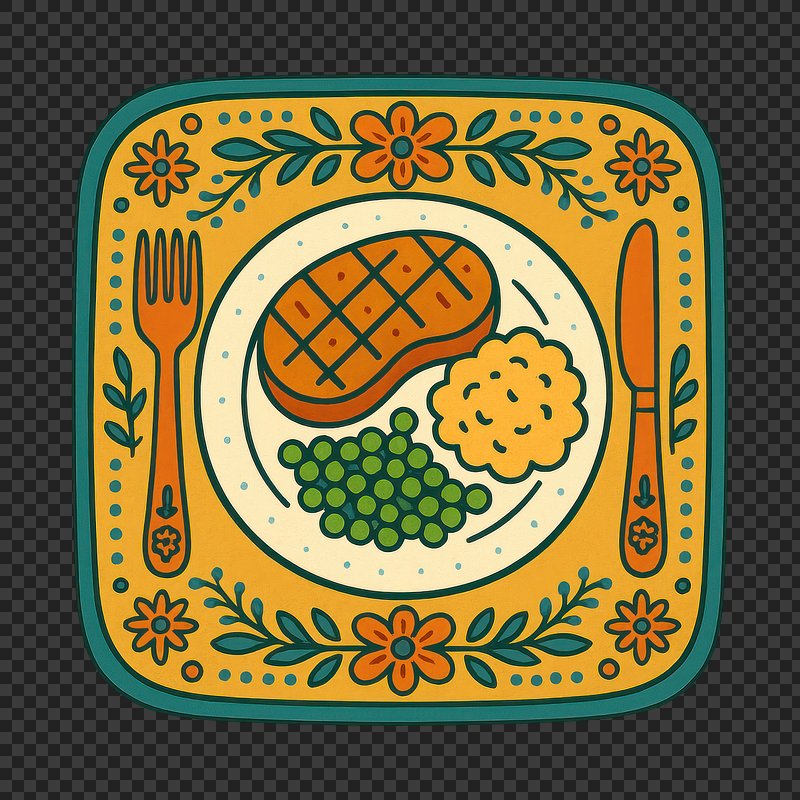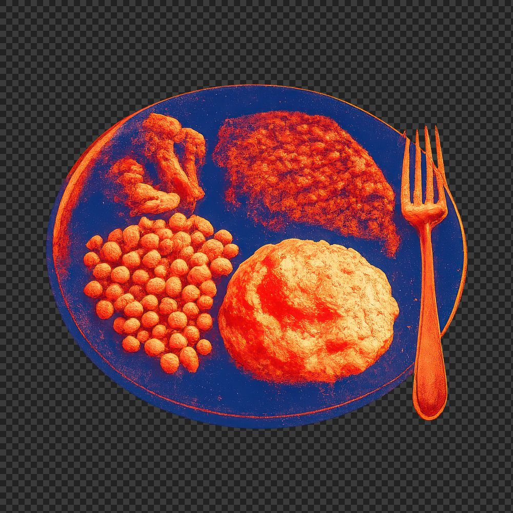 PNG Retro-style plate with comfort food. https://www.rawpixel.com/image/22210364/png-retro-style-plate-with-comfort-foodView license
