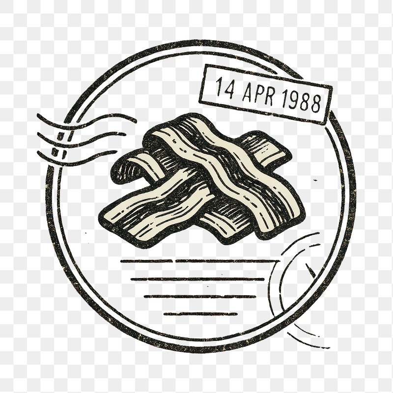 PNG Vintage bacon stamp illustration https://www.rawpixel.com/image/23556629/png-vintage-bacon-stamp-illustrationView license