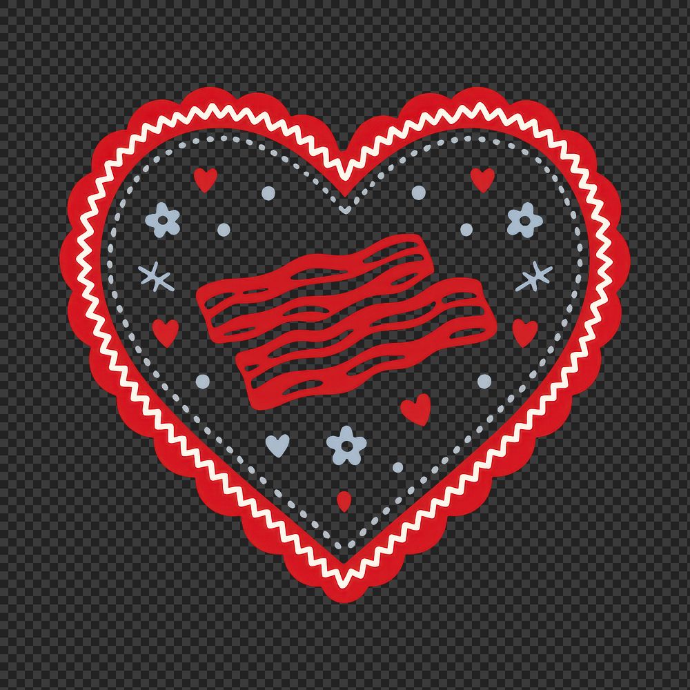 PNG Bacon heart with decorative patterns. https://www.rawpixel.com/image/25152869/png-bacon-heart-with-decorative-patternsView license