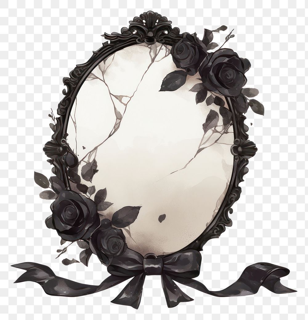 PNG Coquette Antique mirror with cracked glass and black roses illustration photography decorative. https://www.rawpixel.com/image/15601783/png-roses-aestheticView license