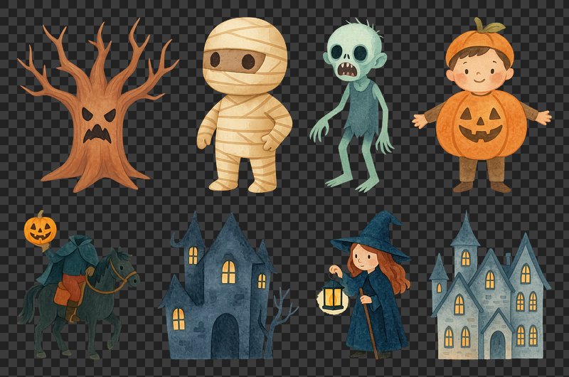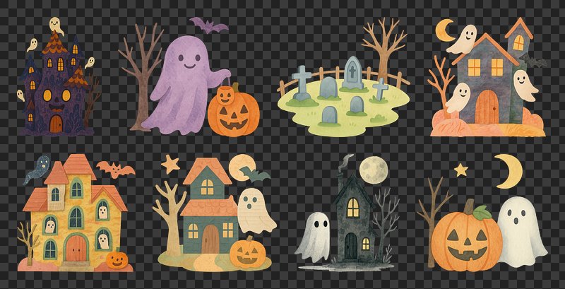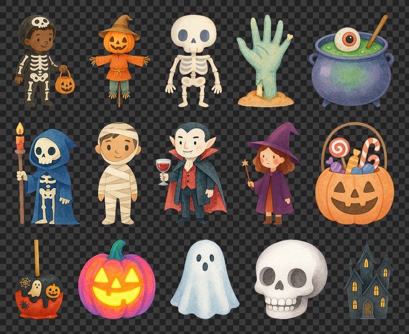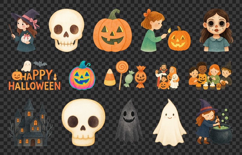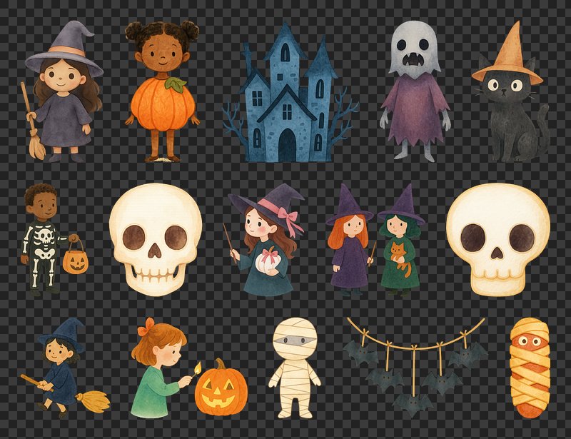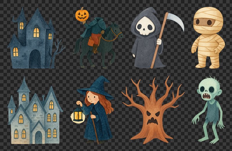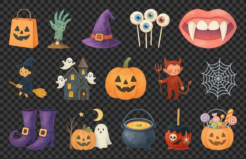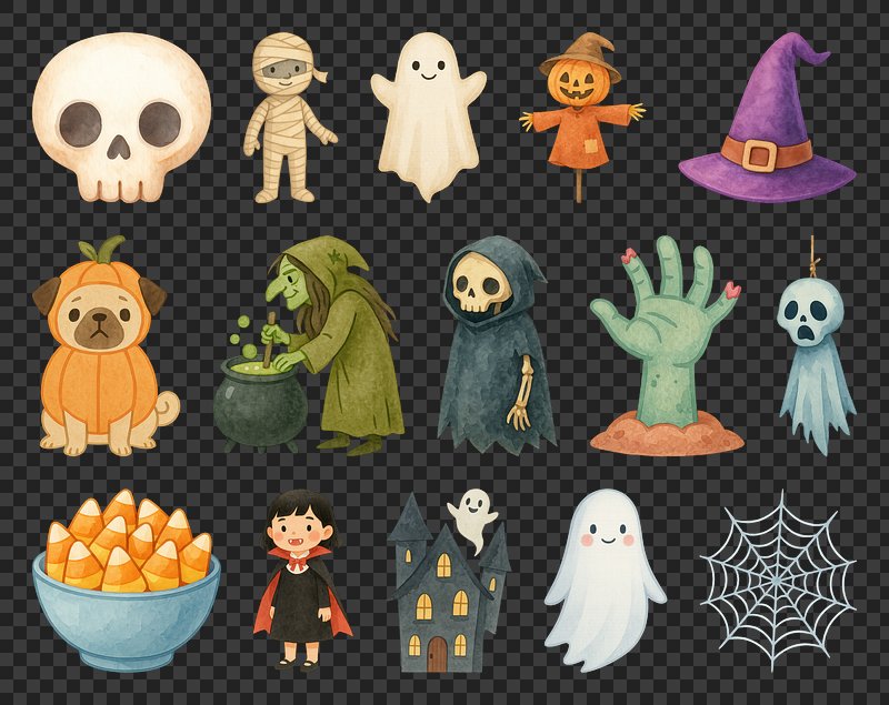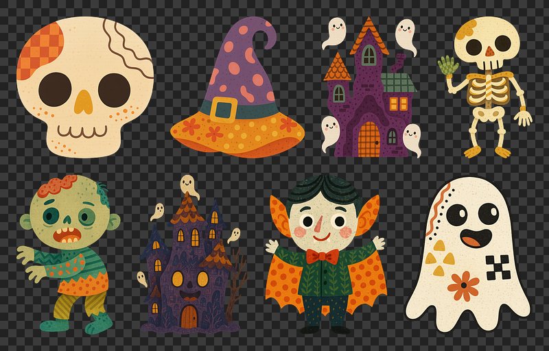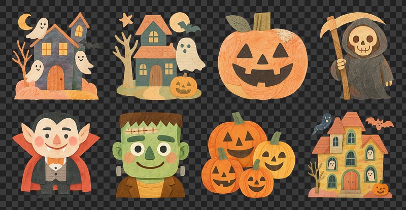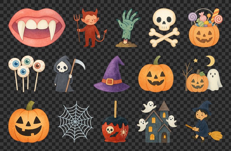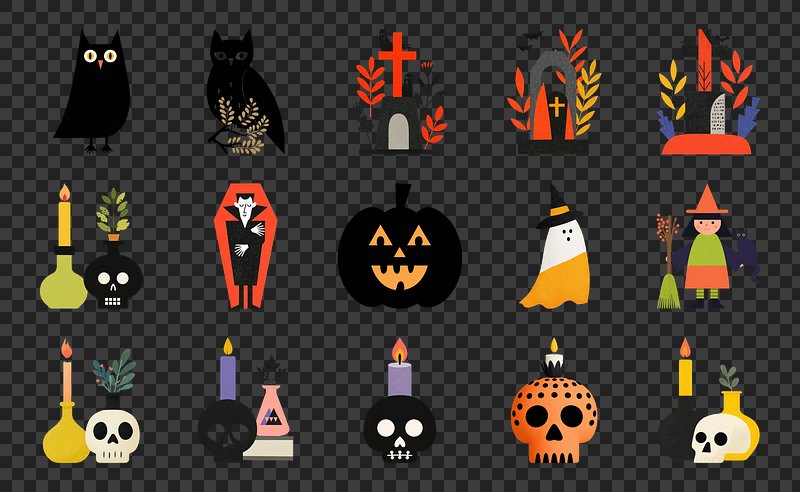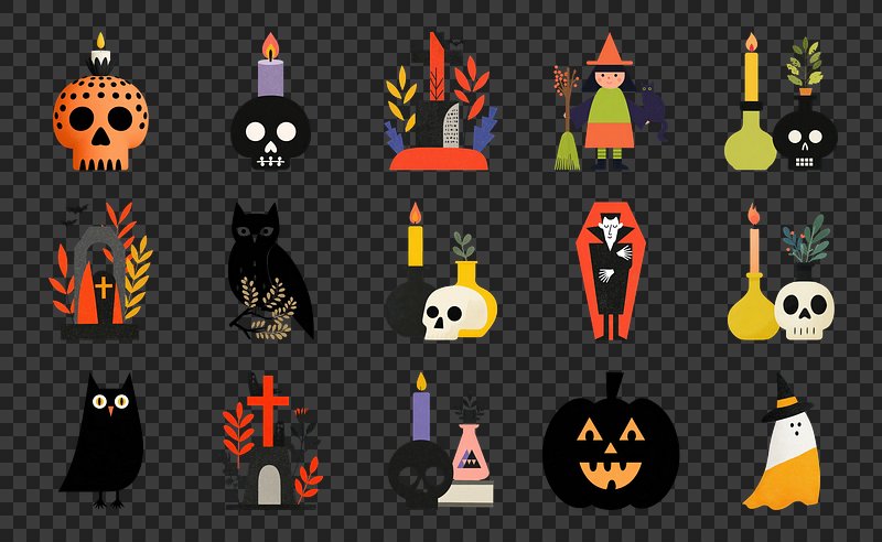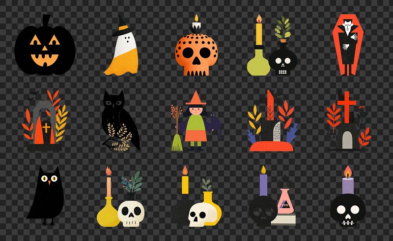 PNG Whimsical Halloween icons collection, element set on transparent background https://www.rawpixel.com/image/20435588/png-whimsical-halloween-icons-collection-element-set-transparent-backgroundView license
