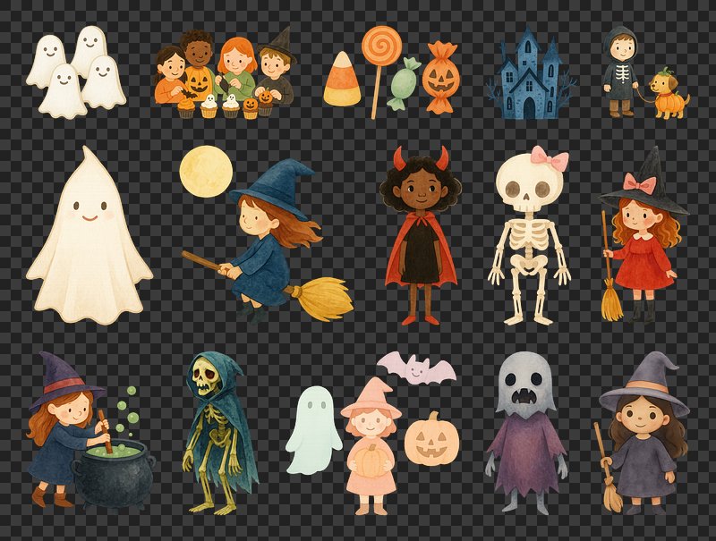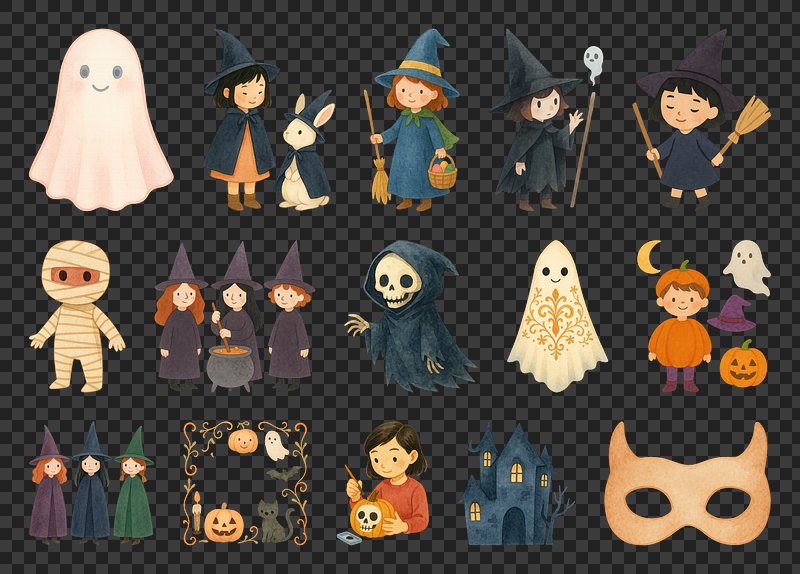 PNG Charming Halloween-themed cartoon illustrations, element set on transparent background https://www.rawpixel.com/image/20435585/png-cartoon-cuteView license