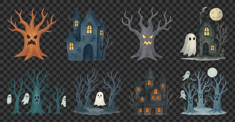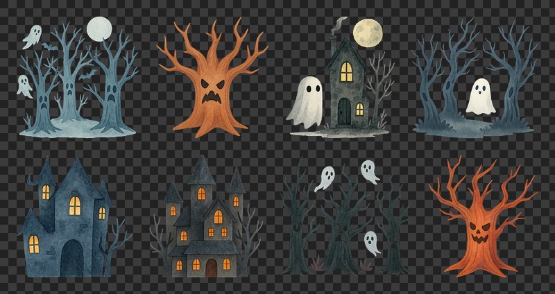 PNG Charming haunted house illustrations, element set on transparent background https://www.rawpixel.com/image/20626775/png-charming-haunted-house-illustrations-element-set-transparent-backgroundView license