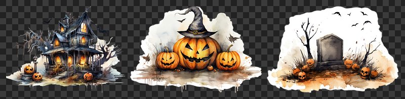 PNG Halloween festive spooky decorations pumpkins, element set on transparent background https://www.rawpixel.com/image/19165535/png-balloons-houseView license