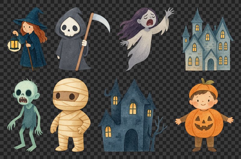 PNG Whimsical Halloween cartoon characters, element set on transparent background https://www.rawpixel.com/image/21693492/png-background-cartoonView license