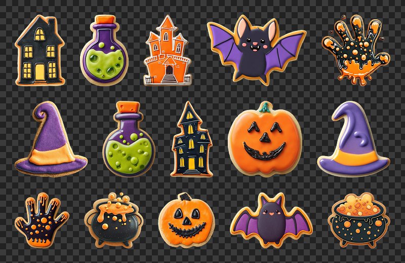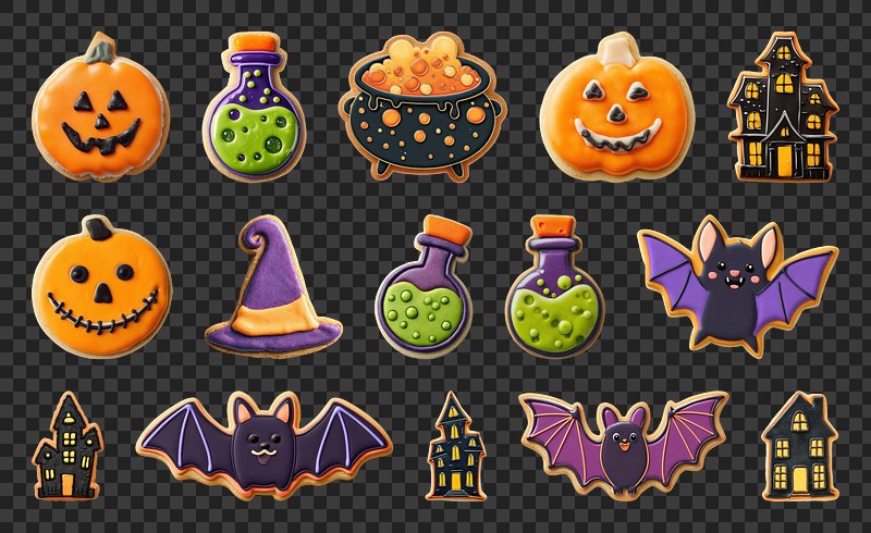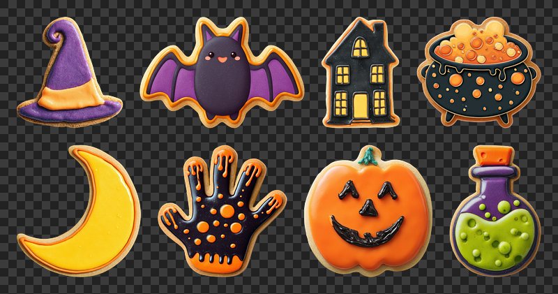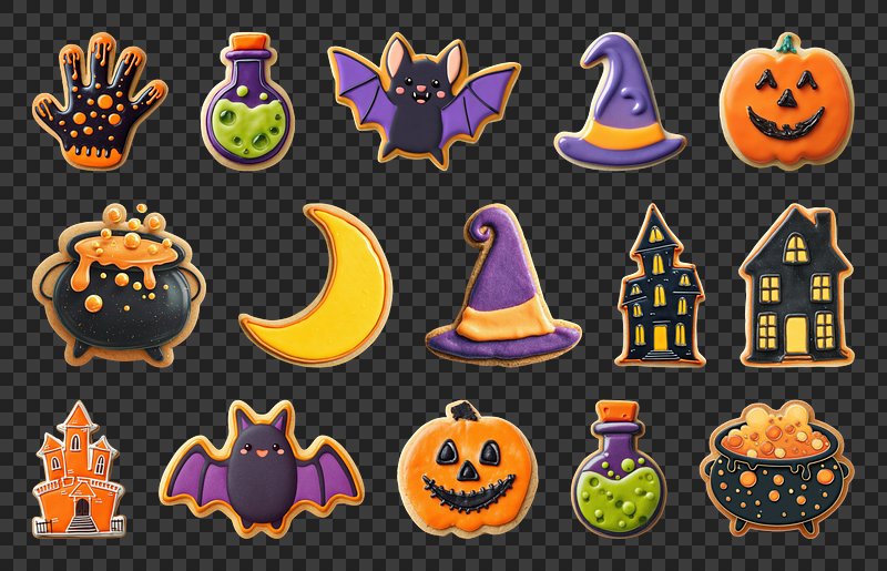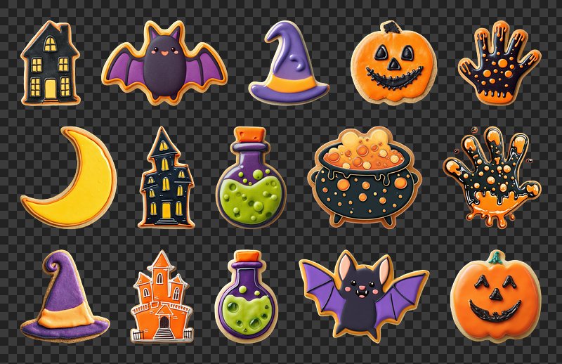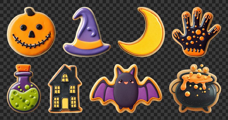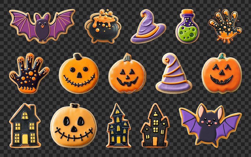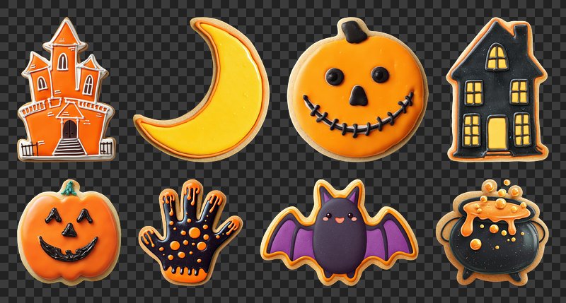 PNG Halloween cookies with spooky designs, element set on transparent background https://www.rawpixel.com/image/22867505/png-cute-animalView license