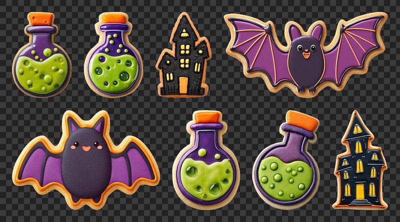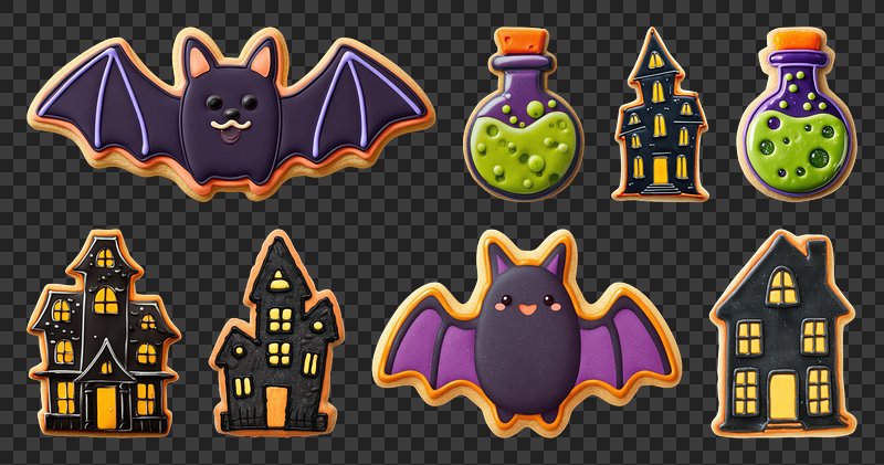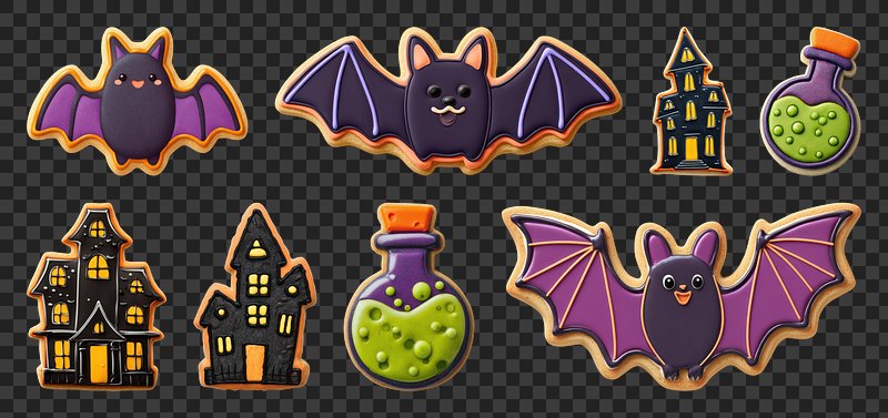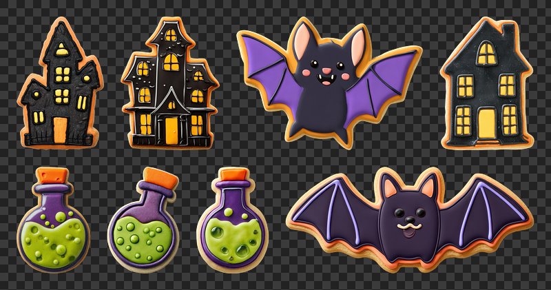 PNG Halloween-themed cookies with bats, element set on transparent background https://www.rawpixel.com/image/22867504/png-halloween-themed-cookies-with-bats-element-set-transparent-backgroundView license
