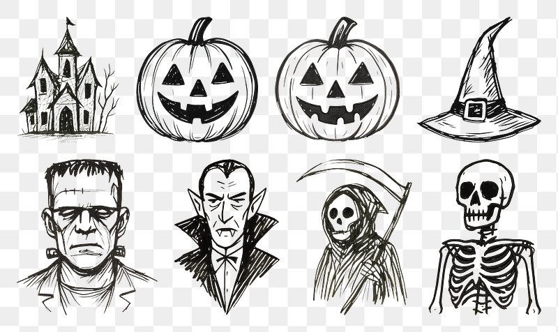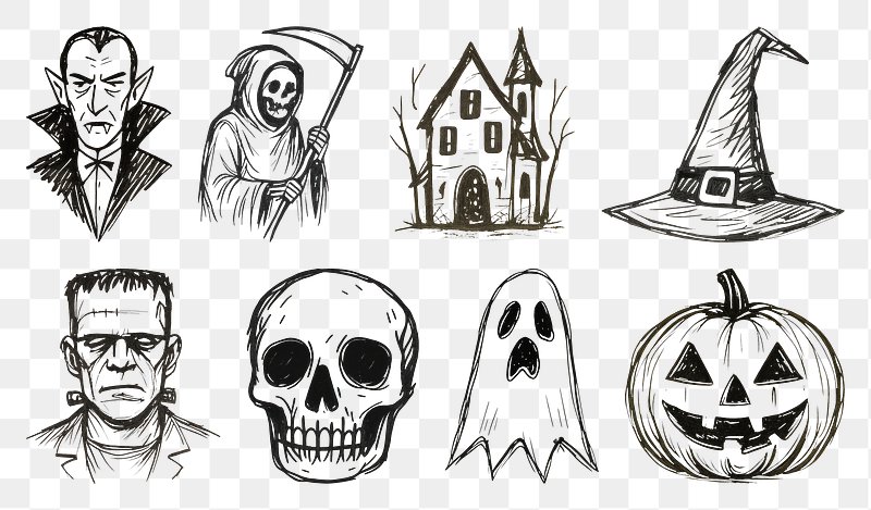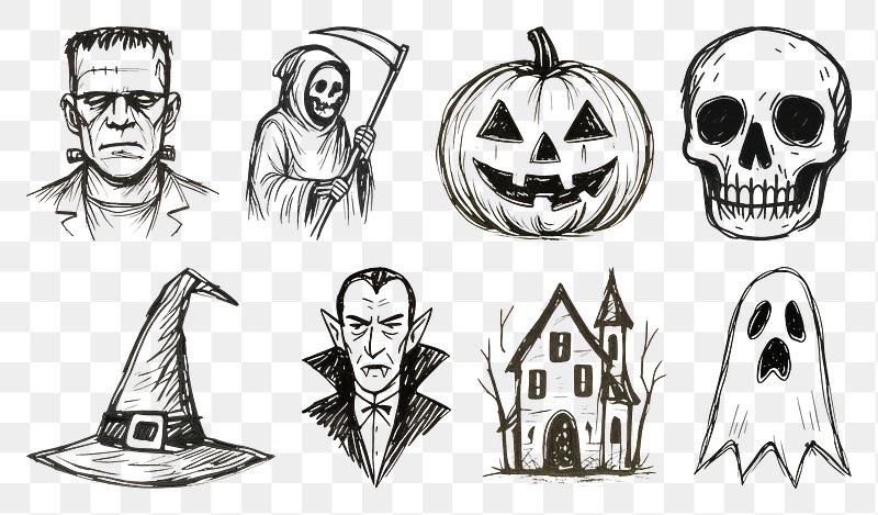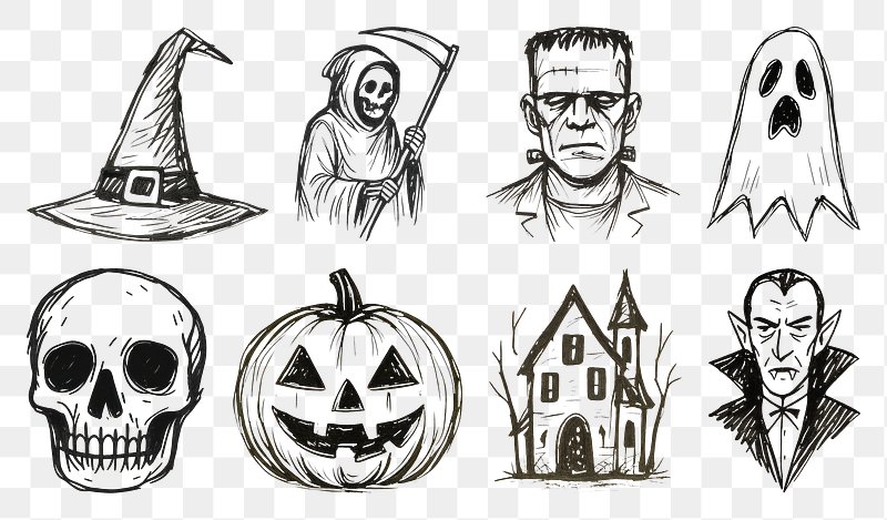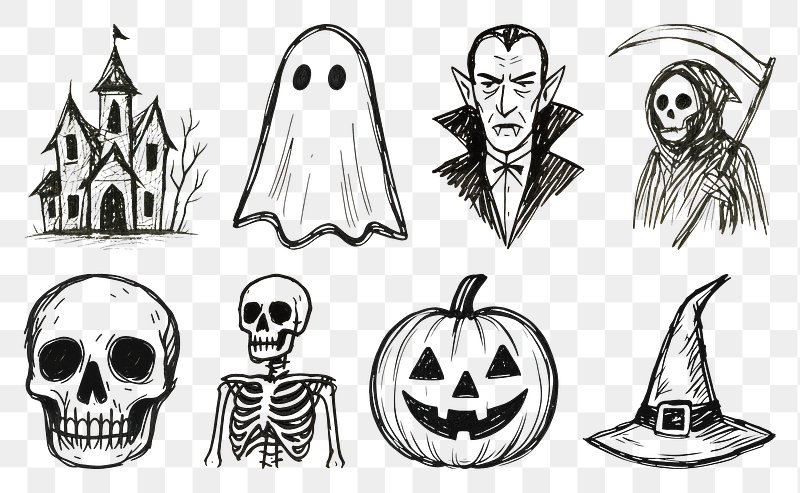 Spooky Halloween sketch collection. https://www.rawpixel.com/image/20940557/spooky-halloween-sketch-collectionView license