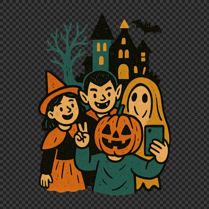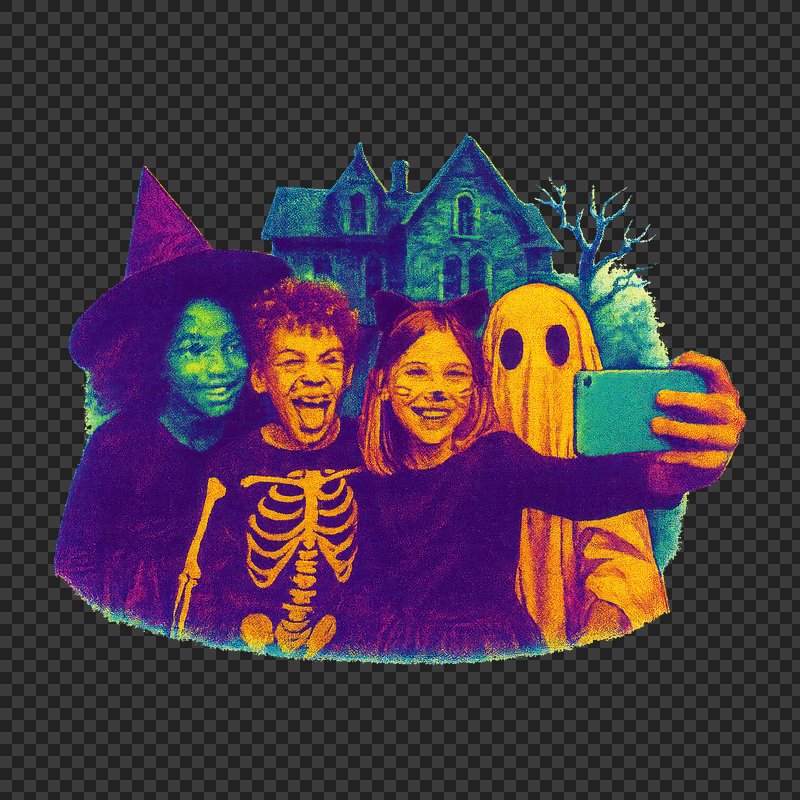 PNG Colorful Halloween kids selfie https://www.rawpixel.com/image/22090606/png-colorful-halloween-kids-selfieView license