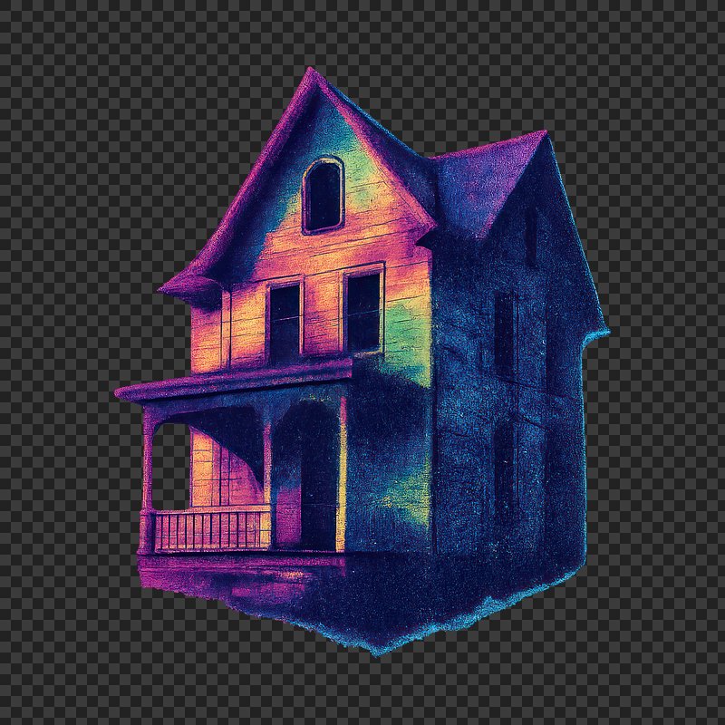 PNG Colorful surreal haunted house illustration. https://www.rawpixel.com/image/23903942/png-colorful-surreal-haunted-house-illustrationView license