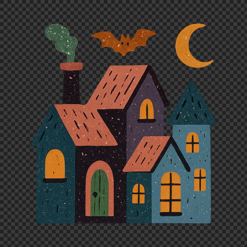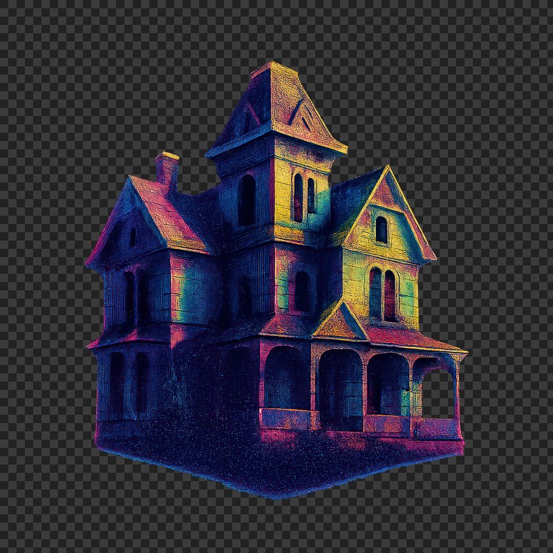 PNG Colorful spooky haunted house illustration. https://www.rawpixel.com/image/18464974/png-colorful-spooky-haunted-house-illustrationView license