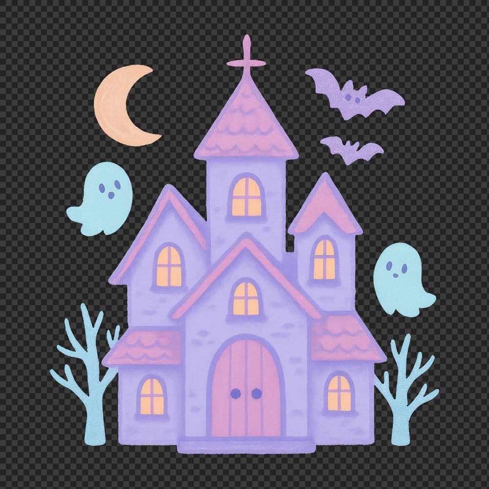 PNG Whimsical haunted house illustration. https://www.rawpixel.com/image/18656112/png-whimsical-haunted-house-illustrationView license