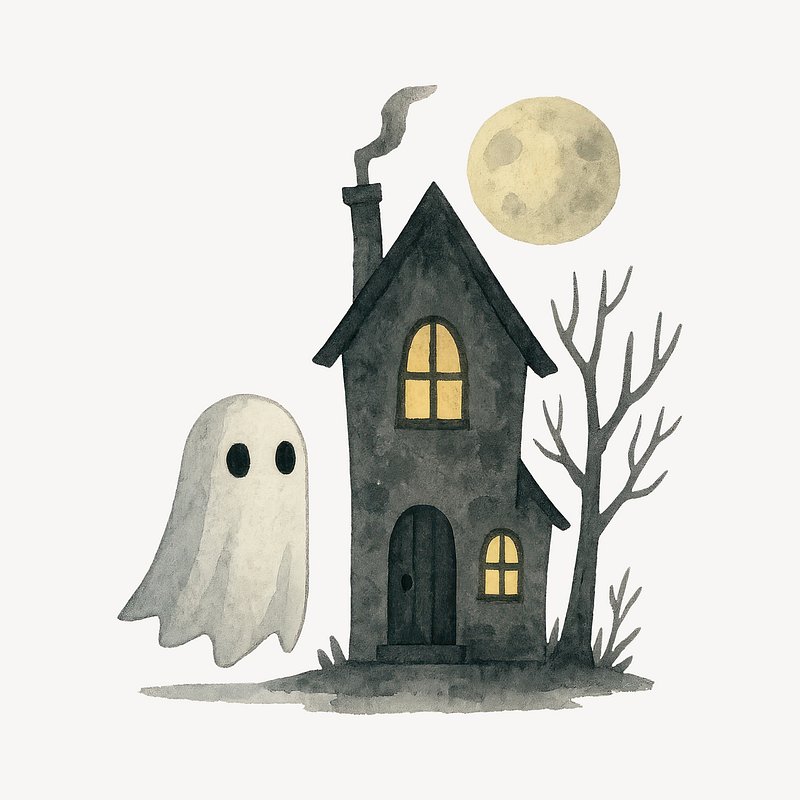 Haunted house with friendly ghost. https://www.rawpixel.com/image/19328376/haunted-house-with-friendly-ghostView license