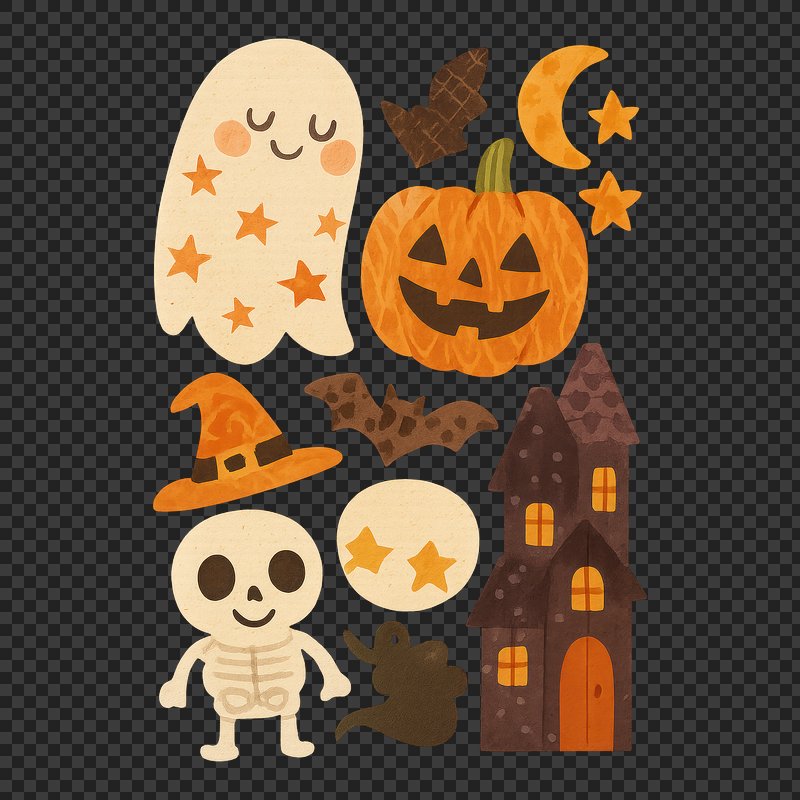 PNG Cute Halloween cartoon illustrations. https://www.rawpixel.com/image/18716278/png-cute-halloween-cartoon-illustrationsView license