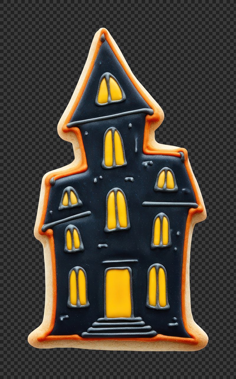 Spooky haunted house cookie design. https://www.rawpixel.com/image/20522576/spooky-haunted-house-cookie-designView license