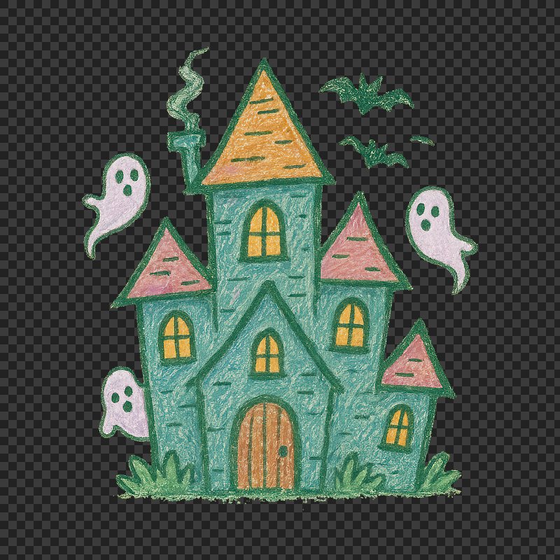 PNG Whimsical haunted house illustration. https://www.rawpixel.com/image/18656082/png-whimsical-haunted-house-illustrationView license