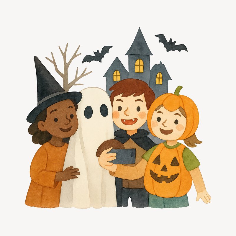 Children in Halloween costumes smiling. https://www.rawpixel.com/image/19420848/children-halloween-costumes-smilingView license