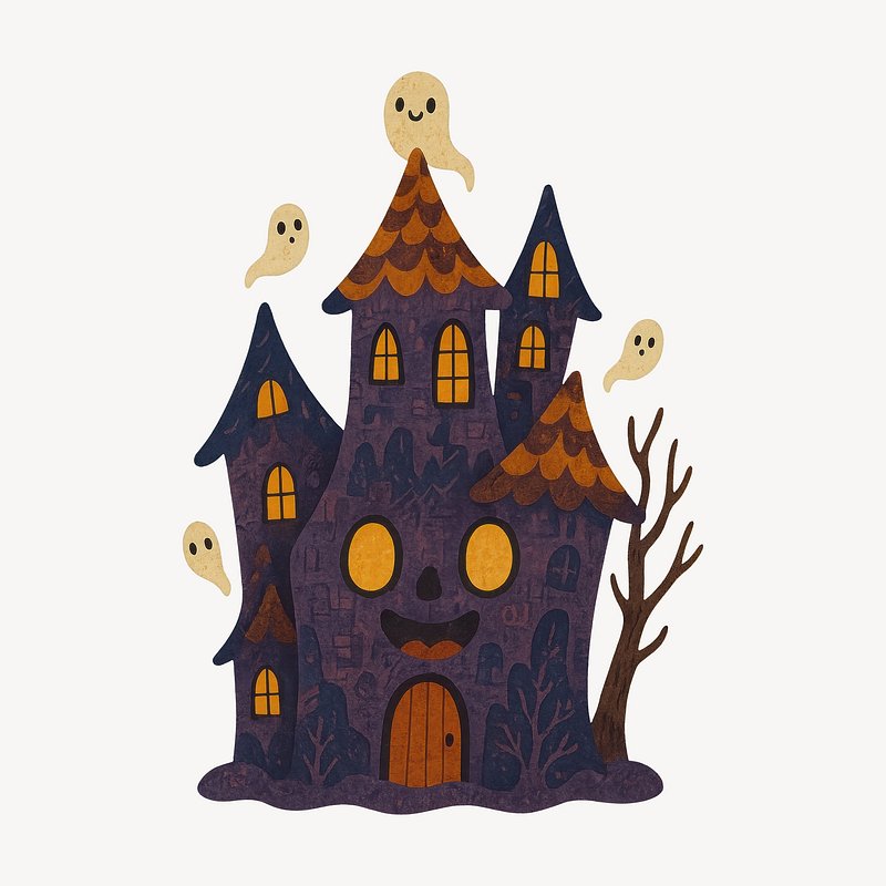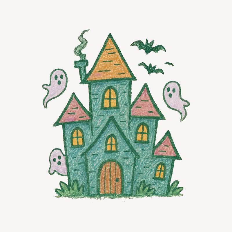 Whimsical haunted house illustration. https://www.rawpixel.com/image/19673623/whimsical-haunted-house-illustrationView license