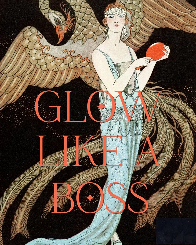 Glow & be strong editable Instagram post template, original art illustration from George Barbier https://www.rawpixel.com/image/22079299/image-animal-bird-artView license