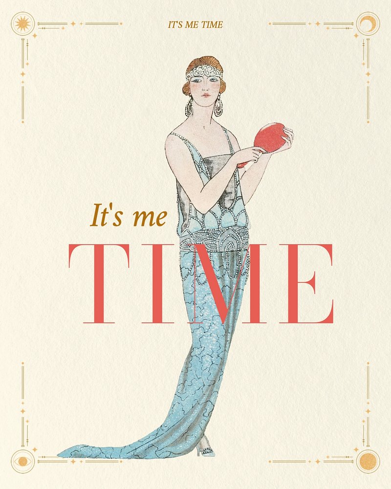 It's me time editable Instagram post template, original art illustration from George Barbier https://www.rawpixel.com/image/22079300/image-animal-bird-artView license