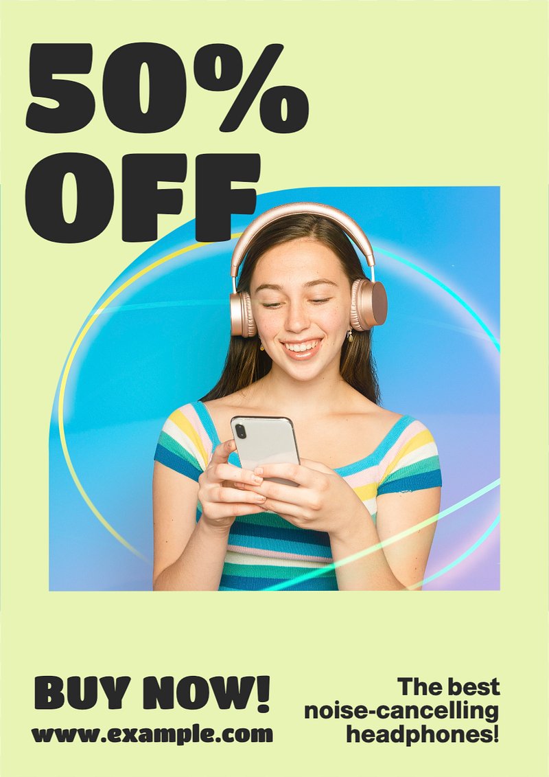 Wireless headphones poster template, editable text and design https://www.rawpixel.com/image/11895659/wireless-headphones-poster-template-editable-text-and-designView license