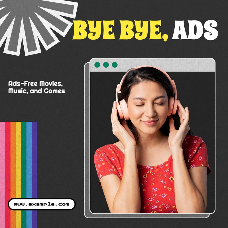 Ads-free streaming service Instagram post template, editable text https://www.rawpixel.com/image/11867643/ads-free-streaming-service-instagram-post-template-editable-textView license