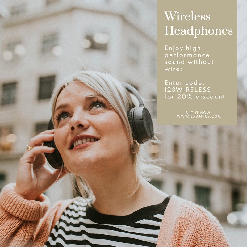 Wireless headphones Instagram post template, editable text https://www.rawpixel.com/image/12552398/wireless-headphones-instagram-post-template-editable-textView license
