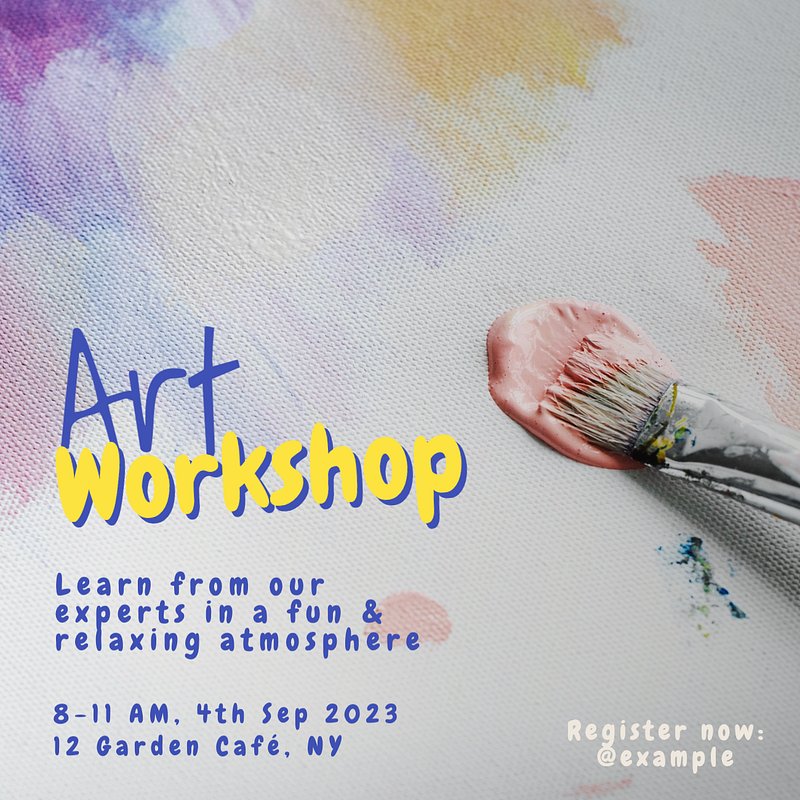 Edit TemplateSaveSaveEdit TemplatepngartdesigntemplatepaintingpostercraftbrushArt camp poster template, editable text & designMorePremium designInfoEdit TemplateView personal and business licenseGet Premium from just$8 / monthExplore PremiumFree design resources and creative tools0Free foreverJoin FreeShareVideosTemplatesSimilarArt camp poster template, editable text and designhttps://www.rawpixel.com/image/12385480/art-camp-poster-template-editable-text-and-designView licenseArt camp blog banner template, editable texthttps://www.rawpixel.com/image/10213969/art-camp-blog-banner-template-editable-textView licenseArt aesthetic poster template, be colorful texthttps://www.rawpixel.com/image/7386704/art-aesthetic-poster-template-colorful-textView licenseArt camp Instagram story template, editable texthttps://www.rawpixel.com/image/10213845/art-camp-instagram-story-template-editable-textView licenseArtistic expression poster template, editable text and designhttps://www.rawpixel.com/image/12463846/artistic-expression-poster-template-editable-text-and-designView licenseArt camp Instagram post template, editable designhttps://www.rawpixel.com/image/9794163/art-camp-instagram-post-template-editable-designView licenseArt supplies store poster template, editable text & designhttps://www.rawpixel.com/image/10142630/art-supplies-store-poster-template-editable-text-designView licenseArtistic process Instagram post template, editable social media designhttps://www.rawpixel.com/image/9803341/artistic-process-instagram-post-template-editable-social-media-designView licenseArt festival poster template, editable text and designhttps://www.rawpixel.com/image/11791528/art-festival-poster-template-editable-text-and-designView licenseArtistic process social story template, editable texthttps://www.rawpixel.com/image/9803716/artistic-process-social-story-template-editable-textView licensePainting workshop poster template, editable text & designhttps://www.rawpixel.com/image/10118364/painting-workshop-poster-template-editable-text-designView licenseArt & creativity Instagram post template, editable social media designhttps://www.rawpixel.com/image/9803340/art-creativity-instagram-post-template-editable-social-media-designView licensePaint brushes poster template, art aesthetichttps://www.rawpixel.com/image/7388533/paint-brushes-poster-template-art-aestheticView licensePainting workshop Instagram post template, editable texthttps://www.rawpixel.com/image/12499571/painting-workshop-instagram-post-template-editable-textView licenseArt class poster template, editable text and designhttps://www.rawpixel.com/image/12699021/art-class-poster-template-editable-text-and-designView licenseArtistic process blog banner template, editable designhttps://www.rawpixel.com/image/9803715/artistic-process-blog-banner-template-editable-designView licenseImmersive art experience poster template, editable text and designhttps://www.rawpixel.com/image/12463627/immersive-art-experience-poster-template-editable-text-and-designView licenseArt & creativity social story template, editable texthttps://www.rawpixel.com/image/9803707/art-creativity-social-story-template-editable-textView licenseEasy DIY poster templatehttps://www.rawpixel.com/image/14406231/easy-diy-poster-templateView licenseArt & creativity blog banner template, editable designhttps://www.rawpixel.com/image/9803709/art-creativity-blog-banner-template-editable-designView licenseGift ideas poster template, editable text and designhttps://www.rawpixel.com/image/11791537/gift-ideas-poster-template-editable-text-and-designView licenseArt gallery blog banner template, editable texthttps://www.rawpixel.com/image/11927544/art-gallery-blog-banner-template-editable-textView licenseKid's art therapy poster template, editable text and designhttps://www.rawpixel.com/image/11780113/kids-art-therapy-poster-template-editable-text-and-designView licenseArt gallery events Instagram post template, editable texthttps://www.rawpixel.com/image/11869079/art-gallery-events-instagram-post-template-editable-textView licenseArt workshop poster template, editable text and designhttps://www.rawpixel.com/image/11866656/art-workshop-poster-template-editable-text-and-designView licenseDIY painting Instagram post template, editable social media designhttps://www.rawpixel.com/image/9803339/diy-painting-instagram-post-template-editable-social-media-designView licenseBrush stroke techniques poster template, editable blue paint stamp borderhttps://www.rawpixel.com/image/8076699/brush-stroke-techniques-poster-template-editable-blue-paint-stamp-borderView licenseArt workshop blog banner template, editable texthttps://www.rawpixel.com/image/11927522/art-workshop-blog-banner-template-editable-textView licenseArt workshop poster template vector in block print themehttps://www.rawpixel.com/image/8054372/art-workshop-poster-template-vector-block-print-themeView licenseDIY painting blog banner template, editable designhttps://www.rawpixel.com/image/9803706/diy-painting-blog-banner-template-editable-designView licenseSketch poster template, editable text and designhttps://www.rawpixel.com/image/12543218/sketch-poster-template-editable-text-and-designView licenseDIY painting social story template, editable texthttps://www.rawpixel.com/image/9803699/diy-painting-social-story-template-editable-textView licenseCustomizable paint stamp poster template, art workshophttps://www.rawpixel.com/image/8152400/customizable-paint-stamp-poster-template-art-workshopView licenseArt therapy session Instagram post template, editable texthttps://www.rawpixel.com/image/12499562/art-therapy-session-instagram-post-template-editable-textView licenseArt mastercalss poster template, editable text and designhttps://www.rawpixel.com/image/12543213/art-mastercalss-poster-template-editable-text-and-designView licenseArt supplies store Instagram post template, editable designhttps://www.rawpixel.com/image/9608263/art-supplies-store-instagram-post-t