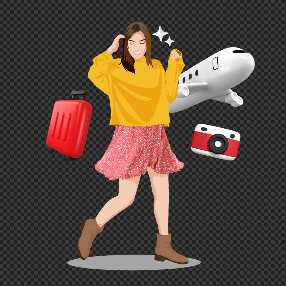 Woman traveling png sticker, vector illustration transparent background